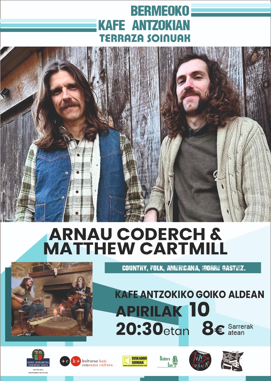Arnau Coderch, cantante de la Banda Arnau & The Honky Tonk Losers, presenta un show acústico diferente a lo que nos ha ofrecido hasta la fecha, junto a Matthew Cartmill; multinstrumentista americano afincado en Gasteiz, donde las canciones propias se entrelazan con multitud de versiones de artistas clásicos y contemporáneos de country, bluegrass, folk y rock. Todo ello pasado por el tamiz de dos melómanos, amantes de las harmonías vocales, y las canciones en su esencia más pura.